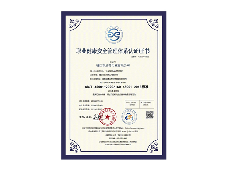 • 職業(yè)健康安全管理體系認(rèn)證證書